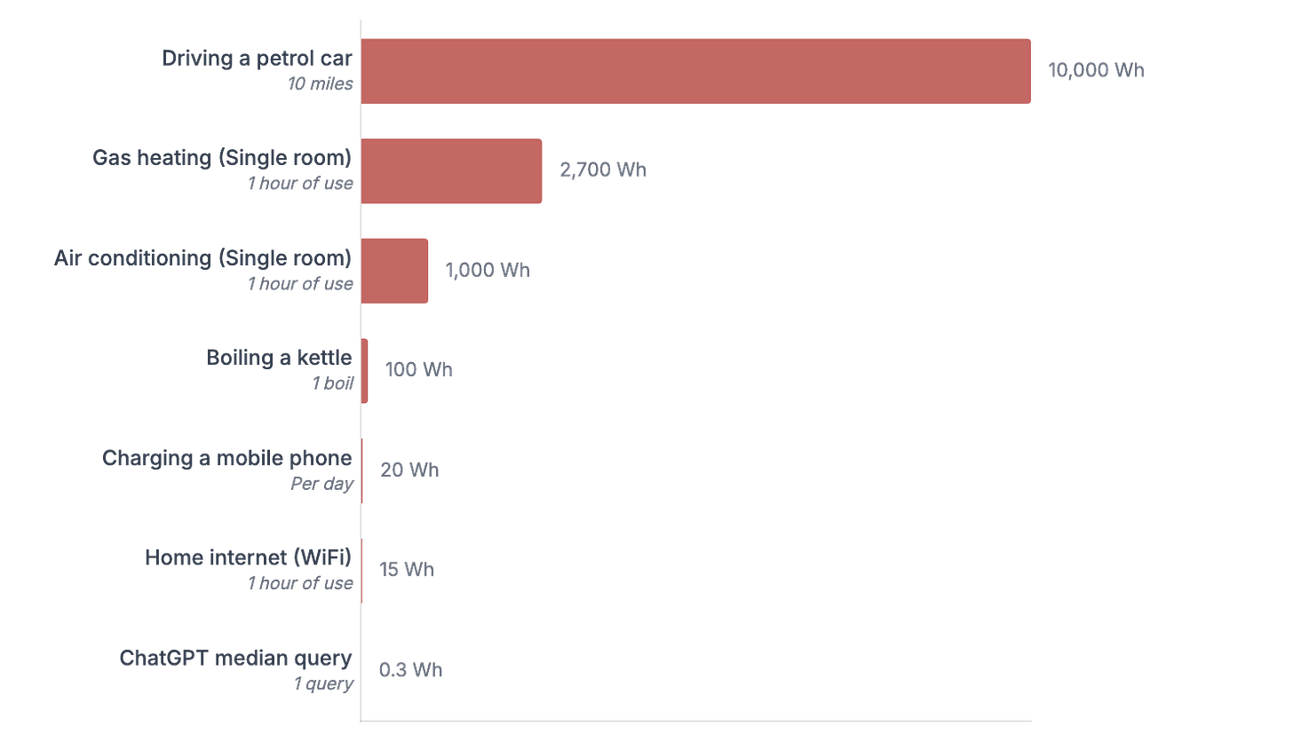 The data scientist Hannah Ritchie has created an online tool showing the relative energy consumption of various technologies. One general lesson is that the energy demands of devices that deal with bits are trifling compared to those that deal with atoms.