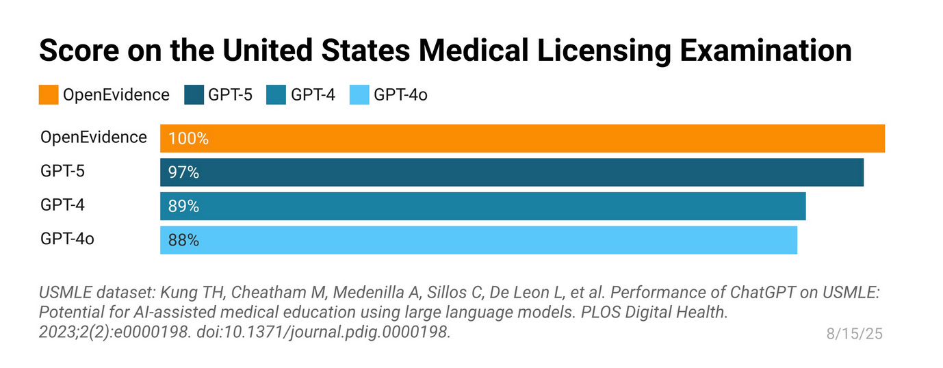 OpenEvidence, an AI model designed specifically for medicine, has achieved a perfect score on the United States Medical Licensing Examination.