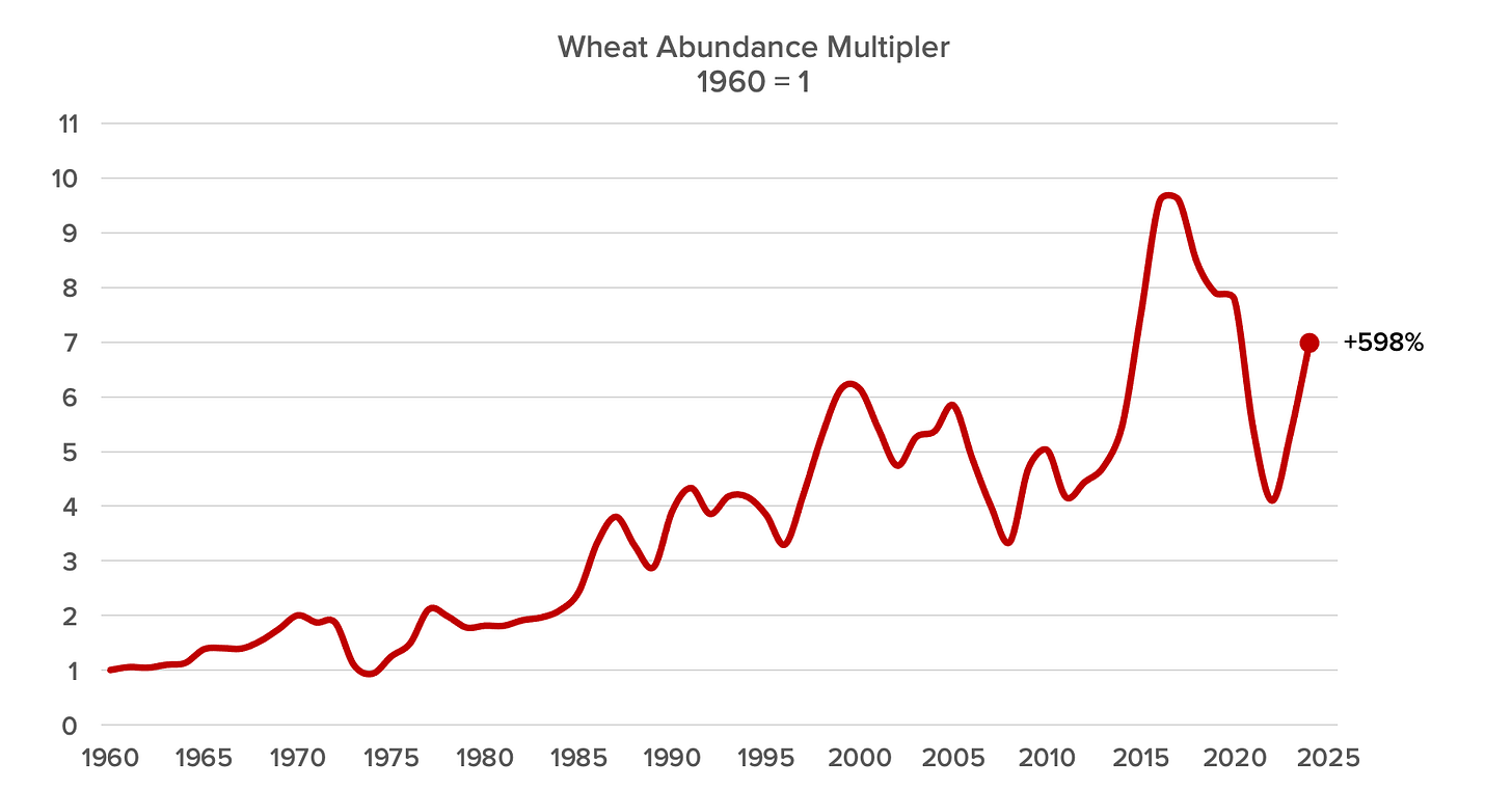 Yes, there have been moments when wheat prices spiked—due to droughts, wars, and politics. Yet with fewer conflicts, relentless innovation, and open markets, wheat has only grown more abundant. If Reverend Malthus could see our world today, I suspect he’d be relieved—and perhaps even delighted—that human ingenuity proved him to be so spectacularly wrong.
